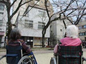 桜の開花時期を迎え、老健近くの公園まで皆で花見に行ってきました!